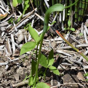 今年もヘビたん生えてきた🐍 カラスビシャクという植物で、生薬ではメジャーな「半夏(ハンゲ)」です カラスビシャク サトイモ科ハンゲ属 学名: Pinellia ternata 効能: 鎮咳、去痰、鎮吐、鎮静