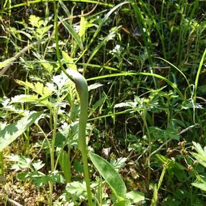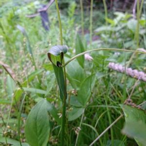 カラスビシャク サトイモ科ハンゲ属 花期:5月〜8月 近所のアパートの植え込みで見つけましたー 人里近くの草地や畑などで普通に生えるんですね〜〜 ウラシマソウに似た花がこんな場所で見つかるとは、驚き半分喜び半分です😆