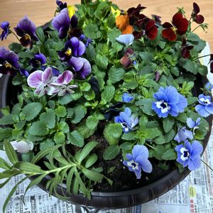 SnowManビオラ達 Vol.2 2024.11.11に載せた、植えたばかりの9色(の予定)宿根かすみ草と寄せ植えです こんなにあったのになー 1枚目 11/11の全体画 2枚目 🖤黒が真ん中に 3枚目 分離したかすみ草 昨日1/22ですが、SnowManデビュー5周年でしたパチパチ👏🎉㊗️