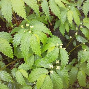 ウワバミソウ イラクサ科 沢沿いの湿った場所の斜面に垂れ下がるように生えていました。 こちらは長い柄がある雄花序 3枚目は別の場所で見た雌花序の株 別名はミズナ、ミズともよばれ、水の綺麗な沢沿いに生える美味しい山菜だそうです。 ミズは、茎が柔らかく水分が多いから「水(ミズ)」。ウワバミソウという名は、ウワバミ(大蛇)の住みそうな暗くジメジメした所に生えることから名付けられたとか🐍⁉︎ 白い花も雨に濡れて瑞々しかったです🌧️