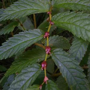 里山の凹地に有りました。時折見る山野草でーす。 (ウワバミ草)(ミズとも呼ぶ)