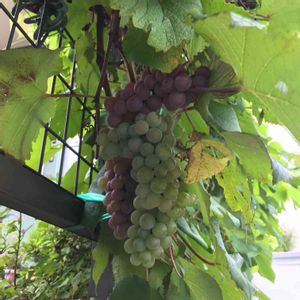 台風が来る前の写真🤳 台風が来る前にデラウエアを取っちゃいました!ジベレリン処理したけどやっぱり少しタネがあるやつも😅来年は完全無種子化を目指したいです❗️