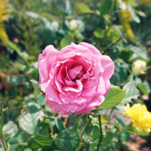 232花目✨ ピンクのバラ オールフォーラブを追加 隣は種苗屋さんのキャンペーンとかでいただいた ヒマワリ サンリッチアップライトオレンジ どちらも気持ち良く 真っ直ぐ上向きに咲いています🍀 7/28@土用丑の日の3番テーブル