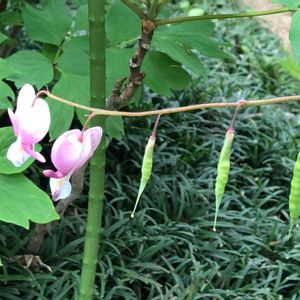 鯉のぼり? タイツリソウ 藤ぼたん、瓔珞ぼたんという異名があるそうです。 葉っぱがぼたんに似ている