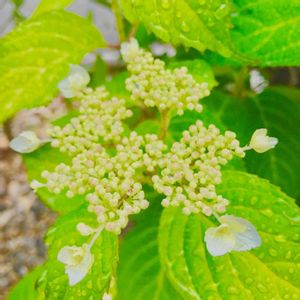 山紫陽花❁❀✿✾瀬戸の月 咲き始めました まだすごく小ぶりだけど 可愛らしい花をつけてくれました(*^^*) って、ガクか(^^