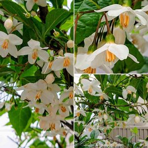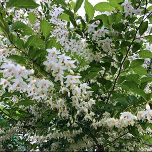 クレマチス、薔薇に続き… エゴノキの花💐、咲きました。 白と黄色のコントラストが爽やかで、鈴なりで可愛いです😍