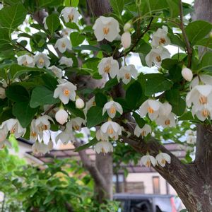 我が家のベランダのエゴノキ* 夏に留守が多く 段々と枯れ枝が増え 今年は花が少ないです😢 例年だと枝中にこのお花が並んでるのに。 復活方法・・調べてみたい。