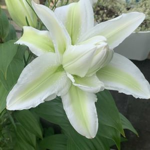 オリエンタルリリー アイシャ ユリ科 ユリ属 昨年 白いアイシャと縁がピンクのアヌースカの球根をうえましたが全部白みたいです。