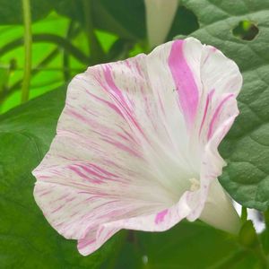 西洋アサガオ ヴェニスピンク 毎年 こぼれ種から育っています 今年は白地にピンクの縞模様の 花が咲く同じ茎(蔓)から 真っ白い花も咲くようになりました 「枝変わり」現象かしら⁉ #2023涼を呼ぶ夏の花草木