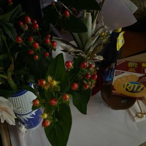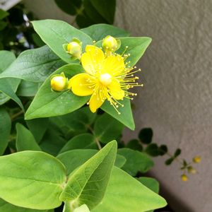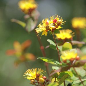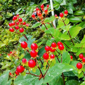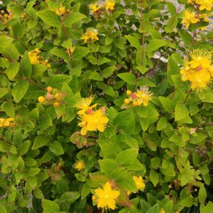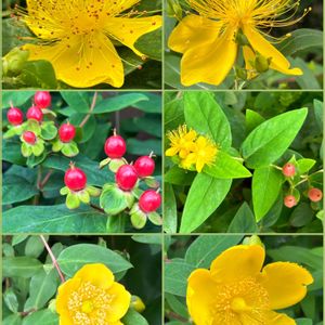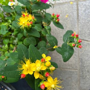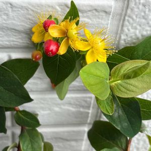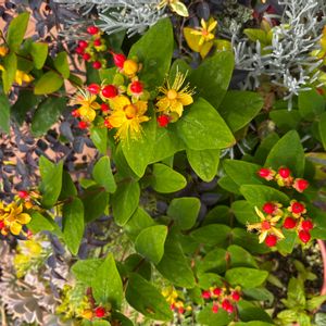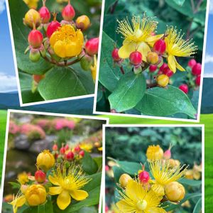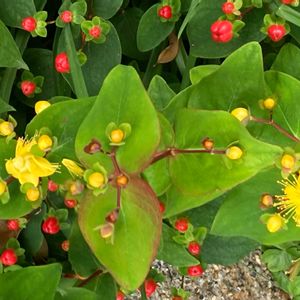 ヒペリカム(コボウズオトギリ) 赤い実と黄色いお花が混ざって可愛く咲いています🌼🔴