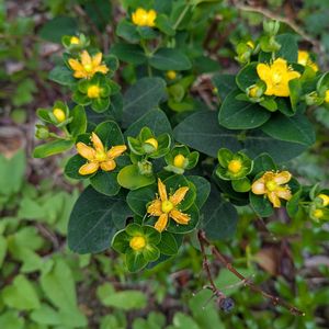 ヒペリカム アンドロサエマム (androsaemum) 和名:コボウズオトギリ (小坊主弟切) ヨーロッパ~中近東 原産の 半落葉小低木・・・ この⬆植物を 普通『ヒペリカム』と呼ぶが、これは 園芸での 「流通名」であって、オトギリソウ科 オトギリソウ(ヒペリカム)属の『総称』の 意味である。 葉は 卵形 又は 卵状楕円形で 葉柄が無く、普通対生します。 花も美しい✨のだが、花より果実(5枚目)の方が面白く、鑑賞用としては こっちの方が 人気が高い。和名の「小坊主」は、果実の形を 例えたものである。弟切は この⬆種が『樹木🌳』なので、草(くさ)を 省いた結果です。 品種に よって 果実の色は 様々ですが、時が経つと 黒く 変色して しまいます。 🏷黄金色の金曜日 🏷蕊好きマニア