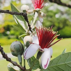 今月も宜しくお願いします。😊♡ 🏷️「真っ赤な火曜日」 参加させて頂きます❣️ 1️⃣『フエィジョア』 赤い蕊がとても美しく素敵でした❣️ 2️⃣『コボウズオトギリ(小坊主弟切)』 赤く、丸い実がとても可愛いのです❣️ 3️⃣『桑の実』❤💜🌿 赤い実はまだ酸っぱい未熟期。黒いのは熟して甘く、食べ頃♪と、花壇整備中のオジサマの話でした。 "1粒いかが?"と、言って欲しかったナ。😅w 4️⃣『ネグンドカエデ・フラミンゴ』🦩♪ 新芽は赤く、他は白と緑のオシャレな葉♪💚🤍🌿 一番綺麗な時期に出合えました♪♪ 5️⃣『ジャカランダ』 一輪でも咲いていて欲しかった花💜🌿ですが、まだ固い蕾でした。(泣)💦 敷地内には、大小あわせて10本程あるジャカランダの木です。🌳✨ 素敵な紫色💜の花を見に また訪れたいと思います。🚃💨🎵 ☆2025/6/1 撮影📱♪ ☆千葉県浦安市明海大学 浦安キャンパス界隈