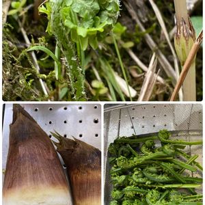 今年は山に帰れないので 母から山の幸セットを送ってもらいました🌿 行者にんにく こごみ あいこ たけのこ ありがたや〜🙏