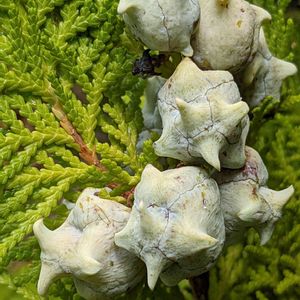 こんばんは~🤓🌠 今朝は本当に寒かったですね❗台風🌀一過の晴天とは行かず曇り空🌥️でしたが体調も大分良く🚐💨ドライブ🎶にでかけました😃 途中立ち寄った❗道の駅ふたかみパーク當麻付近で見た❗モリモリと実を付けた🌿🍃🍀 🌳コノテガシワ🌳 🚐💨ドライブ🎶&👟ウォーキング🚶の途中🥰 R4年9月21日📸撮影