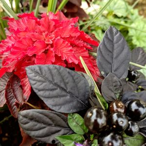 街角で見かけた 秋の寄せ植え 鑑賞用唐辛子 アイビー アカバセンニチコウ