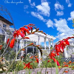 🏷 ブルー・エンジェル 今日はキュンキュン乙女倶楽部の活動日( 'ω' و(و"♪ 梅雨明けした様な暑さが続いていますが 朝夕は涼しくて(~¯︶¯)~ やっと咲いてきたヒメヒオウギズイセン🧡 葉っぱのうちは雑草みたいで(⌒-⌒; ) 蕾がつき始めると格好良くてワクワク🎶🎶🎶 開花すると元気色の濃いオレンジが パワーを与えてくれます(๑•̀ㅂ•́)و✧