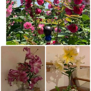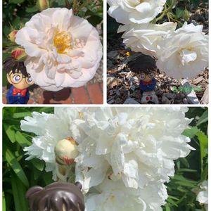 今日はごっつご機嫌の日ですね😁 左は今日のお花、ヒマワリ🌻以前、ソニエン君と百合が原公園散歩した時のです🎶 右下はマロママさんちにちょうど1ヶ月前に行ったときにコナンキャラクターみんなと♡ごっつご機嫌に参加します😃 右上は今、我が家で開花中の薔薇さん「マチネ」実物はもう少し紫色をしています💜主人の好みでお迎えしたものです🌹 金曜ローズショーと金曜日の蕾達に参加します🌹