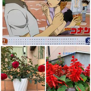 カレンダーの日はコナンのカレンダーで📅 左下はトゥルーブルーム レッドキャプテン🌹 右下はサルビア 🏷真っ赤な火曜日 🏷カレンダーの日