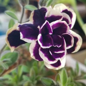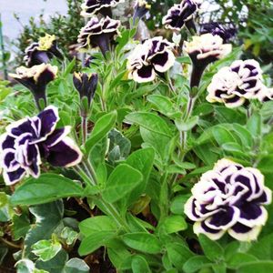 おはようございます😊 和の雰囲気が漂う… ペチュニア・花衣 黒真珠✨ 昨年も初冬まで咲き続けてくれた 頑張り屋の八重咲きペチュニアです。 残念ながら、冬越しは出来ず、 今年も新しくお迎えしました。