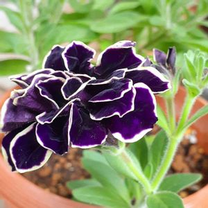 ペチュニア 花衣シリーズ 黒真珠 6/11に投稿した見本鉢の見切り品です💜 可愛く咲いてきました🥰 見てくださってありがとうございます💜 (❀ᴗ͈ˬᴗ͈)⁾⁾ペコリ