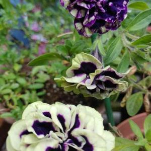 当選したペチュニア花衣黒真珠 近くで見ると花びらのフリルと色合い、何とも言えない美しさ✨こういうペチュニアははじめて見たよ。 夏までたっぷり日光浴させて元気な株になってもらいましょう😊