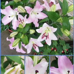 こちらは、昨年 溢れる程に花を咲かせたピンクカサブランカ「マレロ」 今年は少し色白サンですがたくさん蕾も控えています。 昨年、たくさん咲きすぎたので、今年は期待薄かな〜なんて思ってましたが、植木鉢の脇をはみ出す様に茎が両方からせり出し😲💦慌ててひと回り大きめ植木鉢に植え替えはしました😅