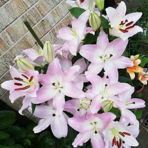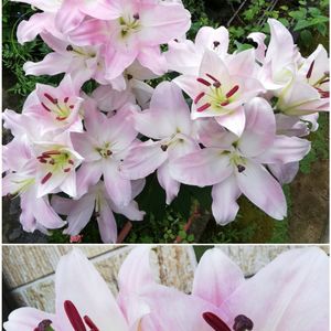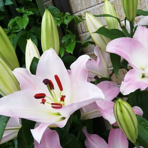 カサブランカと一緒に植えたピンクカサブランカ(流通名) 多分マレロというのが本名かな❣️ 今朝開花😊 毎年ピンクが先に咲きます💗