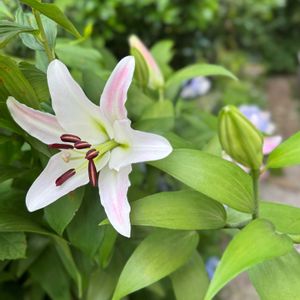 昨夕は雷⚡とともに凄い雨☔💧でした。 ピンクのユリ「マレロ」が咲きました。 下⬇は昨年、あふれる様に咲いたぶん…、今年はお疲れ⬆❓かすかなピンク色 同じ鉢にはかなり太い幹や蕾もあります。分球した花なのかな🤔?それとも日当たり? この後、マレロらしい花が咲きますよう(ʃƪ^3^)