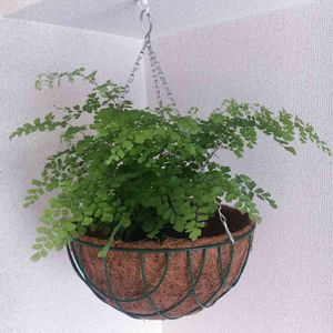 憧れのアジアンタムを吊り下げ始めました😊 正解がわかりませんが、このタイプは鉢のまま中に入れたらいいのかな??