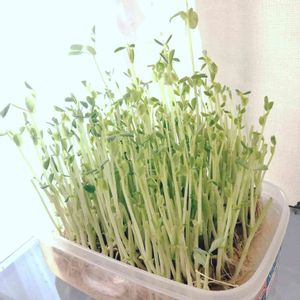 豆苗 一度食べてまたこんなに伸びてきた😁