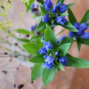 「今日のお花」 *ワレモコウ* 💙咲き始めのリンドウと。 先日、お花屋さんから切り花でお迎えしました。 🏷咲き始めのお花たち (NO.86) 🏷青い花で秋祭り2022 🏷青い花ととその葉を写そう!2022