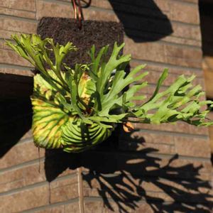 ビカクシダリドレイさんの貯水葉がまだ成長中。もうすぐ冬だけどガンバレ! この肉厚な貯水葉見てるとワッフル食べたくなる(笑)