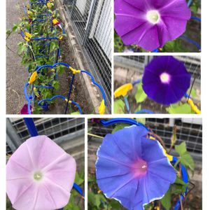 朝顔 投票先の小学校の児童の育てている朝顔です。勝手に撮らせて貰いました。 娘が確か1年生の時だったと思いますが、 持ち帰り夏休みに観察日記をつけていて、 花は100を超えたことを覚えています。 懐かしく思い出させてくれました。