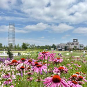 盛り盛り咲いてます…💓 エキナセアの絨毯みたい〜 夏の空も素敵でした〜(pic2🌤️)