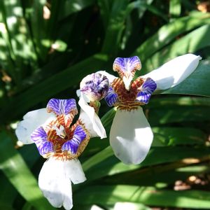 アメリカシャガ 🐵「刀の様な薄い葉の中から咲く花」 葉は一年中緑色🌿 咲いてたから嬉しかった🙌✨♡ 🌴夢の島熱帯植物館