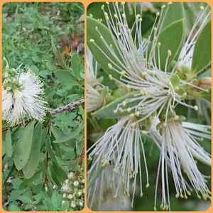 🍃台風の被害の お見舞いを申し上げます。😐 🌿白いブラシの木にも出逢えました。(*^^*)🍀 ☆カリステモン:ホワイトアンザック ☆オーストラリア原産の常緑中木 ☆フトモモ科、カリステモン属 ☆夢の島熱帯植物館 ☆2019年9月25日📷✨撮影 🍂 🍂 🍂 🍂 🍂 🍂