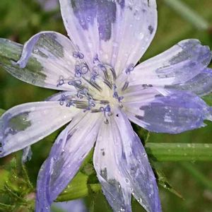 (*^^*)今日のビックリ一番‼️ ☆健康野菜で お馴染みのチコリの花!! ☆雨に打たれて、花びらが まるでオーガンジーの布のように透けてキ☆レ☆イ☆ !! あのチコリから、この花とは❗ あ、知らなかったのはこの私だけかも?😅 花も食べられるそう。🍴✨✨
