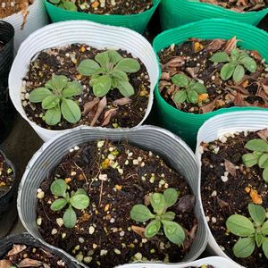 零れ種から 勿忘草とロバツスです🌺 なかなか零れ種は出ないので 嬉しいです🌱