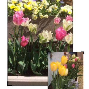 今日のお花、チューリップ🌷 一昨年のコンテナ😊 今年はたくさん球根を植えたので、 今からワクワク♪(๑ᴖ◡ᴖ๑)♪