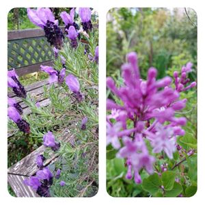 香りのする花木が咲いて来ました🎶 ⬅️ ヒメライラック💜 4~5年目 丈も低く、小さな可愛い花を密集して咲かせます❣️ ➡️ アベリア こちらも3年目程 蕾がピンク色で花は白色💞 甘い香りの花が沢山咲いています🌼✨
