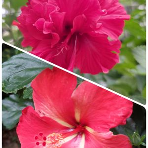 今日咲いたハイビスカス 今朝はこの2種類だけ みんな一度に咲いたの見たいけど かわりばんこに咲く😆 2枚目🏷️真っ赤な火曜日に 入れてね❤