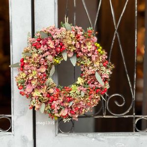 花や蔦ひつじさんレッスン作品 秋色紫陽花フルリース🌸 秋色紫陽花をたっぷり使った 基本のフルリース