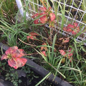 会社で育てている紫陽花です。 草むしりが追いつかずちょっと見苦しいですが、この一株だけ見事に紅葉(こうよう)しました。 17〜8年かけて会社の敷地内で小さいのも含めると30株程育ててますが、これ程色づくのはこの一株のみです。 手毬型紫陽花で、花の色はピンクでした。