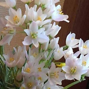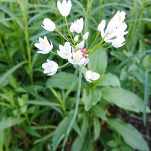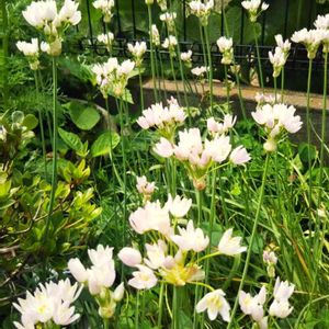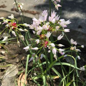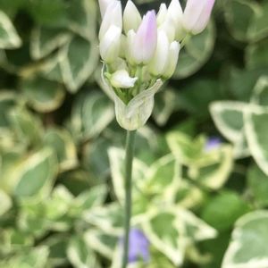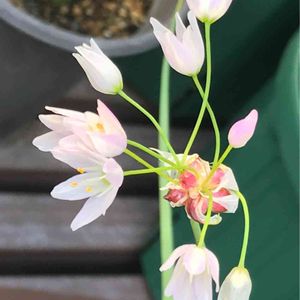 毎日、暑いくらい😵💦のお天気ですね 一週間前に投稿したアリウムが咲きました😍 ちっちゃくて白いお花でほんのりピンク💗で可愛い子が咲きました😆 お名前がアリウム ロゼウムかな? 追伸、アリウムロゼウムだそうです😌 もんもんチャンさんが教えてくださいました🤗 花言葉🍀くじけない心
