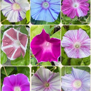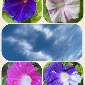 ☔️降り出す前の「今朝の朝顔」 コラージュしてみました🎉 早朝コンビニに行くと 5〜6人の,新老人(笑)が丸くたむろってます・・ほぼ毎朝らしいですけど この光景、懐かしいと思ってしまいました😅 数十年前、深夜に、コンビニに行くと、若者が同じ様に、輪を作り座って話をしてましたもの😅 夜は若者! 早朝は、新老人!・・という事でしょうか🤗