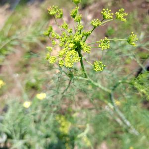 お散歩で出会いました。 羽のような形の柔らかい 葉を持つハーブ🌿です。 すくすくと茎を伸ばして その上に線香花火のような 黄色いお花を咲かせます。 爽やかな香りで 魚介のマリネや魚料理に よく使われています。