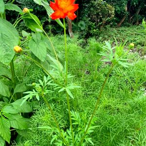 おはようございます☀ コスモス開花しました^_^ 普通のコスモスの種を蒔きましたが、、、 黄花?こぼれ種ラッキー😊