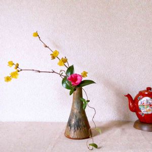 ╭✿Winter Sweet✿╮ 仕事関係の方から、お庭で咲いたという椿と蝋梅(ロウバイ)を頂きました。♫ ロウバイって名前に "梅" がつくけれど梅の仲間ではないんですね。でも枝の形や花の付き方は梅みたいです。❁︎