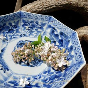 【骨董と花生活 月曜日】 ライラック購入後5日目で蕾の萎みが出たので浮き花へ。小花の場合開花物を選ぶべきか?! ◆後日談 ライラックの花びらは通常4枚 5枚は❤️◆ 骨董業者曰く「1750年頃の物 直しがダサいので安いよ」しかし器を叩くと「キィーン」と高音が響く✨職人の腕の確かさにビックリ!夏にそうめん鉢として活躍の予感、、、