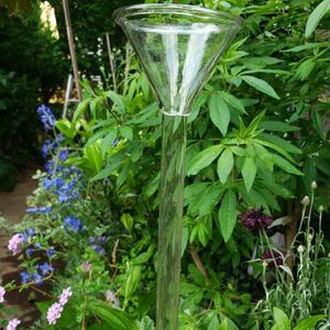 【骨董と花生活 月曜日】 春が進んで 新芽がニョキニョキ。セイヨウニンジンボクは落葉樹。ラベルで株に香気を知る。花は紫色。 手前のガラス製品は? 下が少し膨らんだ虫捕獲器です。底に甘い物をセットする所を壊したので 庭のオブジェに!昭和初期のガラスには 気泡が入ります。
